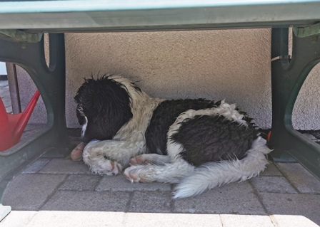 Der Landseer liegt immer und überall maximal im Weg und kann dabei deutlich mehr Raum einnehmen,als ihm größenmäßig zusteht.